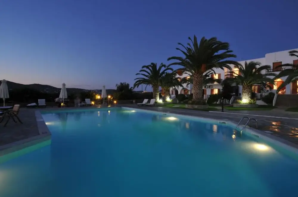Eri Hotel si trova lungo la principale via Parikias-Naoussas a Parikia, nella regione greca delle Cicladi. Offre camere confortevoli dotate di servizi essenziali tra cui parcheggio gratuito, navetta aeroportuale e connessione internet gratuita. La struttura dispone di una piscina all'aperto ideale per rilassarsi durante le giornate calde. I clienti hanno apprezzato l'accoglienza del personale, la qualità della colazione a buffet e la posizione strategica vicino alla spiaggia di Parikia a soli 1,6 km. Tra i luoghi d'interesse nei dintorni si trovano il santuario di Delion dedicato ad Apollo ed Artemide a circa 2 km, la spiaggia di Delfini a 2,8 km e il museo archeologico di Paros a 900 metri. Il ristorante interno permette ai visitatori di gustare piatti locali senza dover uscire dall'albergo.